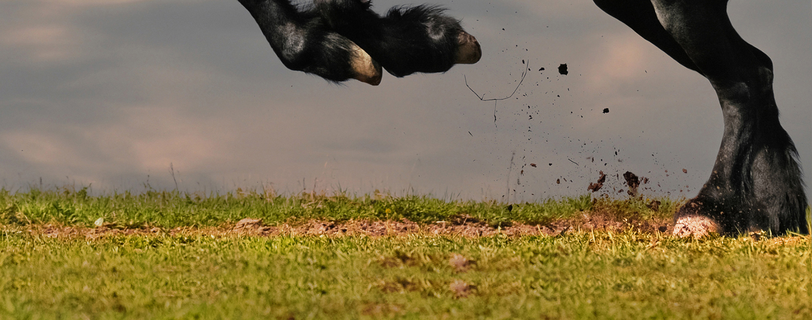 black friesian stallion gallop in sunset